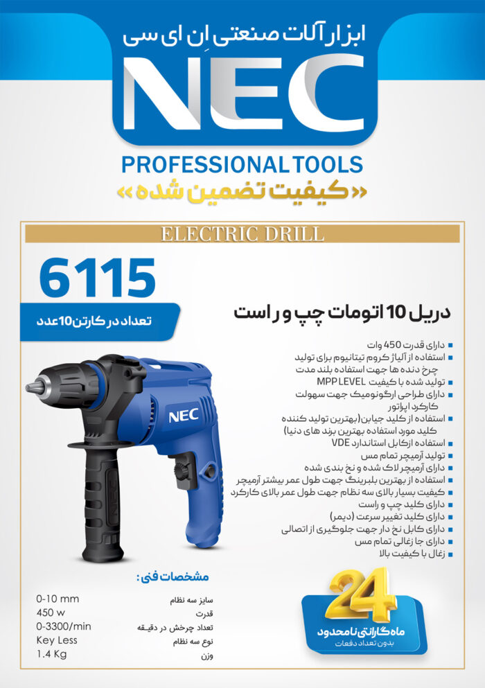 دریل برقی 10 اتومات چپ و راست 450 ولت ان ای سی مدل 6115 NEC